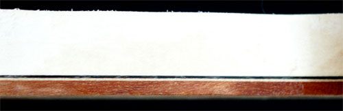 Wieder eine NoRay-Kopfplatte, diesmal in der Anordnung 2+2. Auf der Kopfplatte ein Eichenfurnier, darauf ein Birkenfurnier und darauf ein dickeres "Furnier" Wölkchen-Mahagoni.