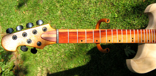 Der Hals besteht aus kanadischem Hard Maple, stehende Jahresringe,