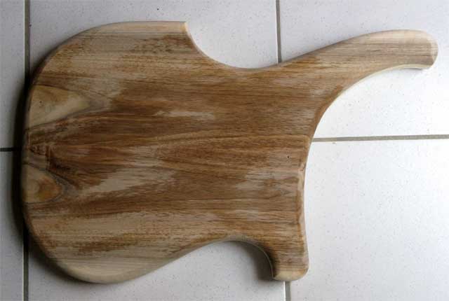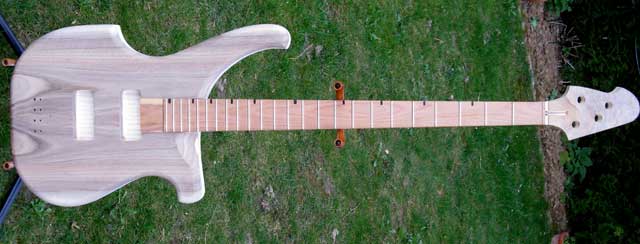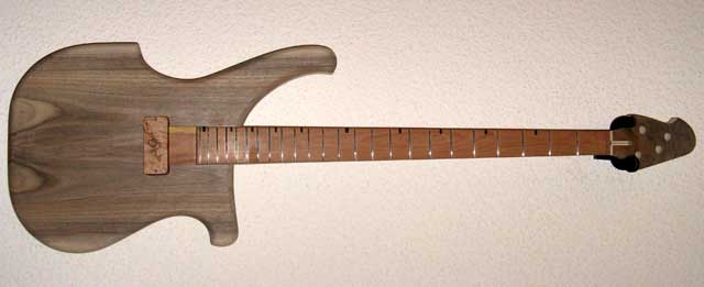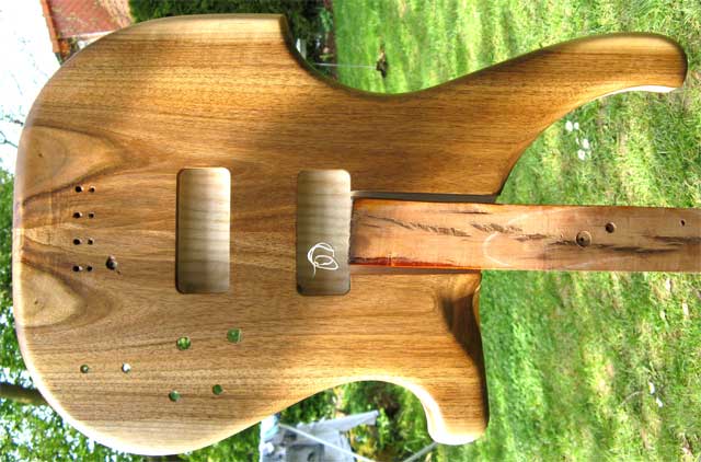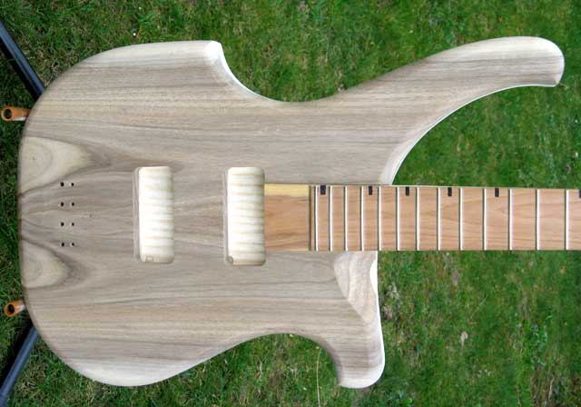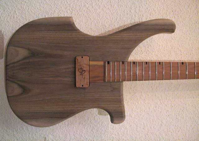 Deckfurnier aus Nuss und ein Griffbrett aus Zwetschge vervollständigen