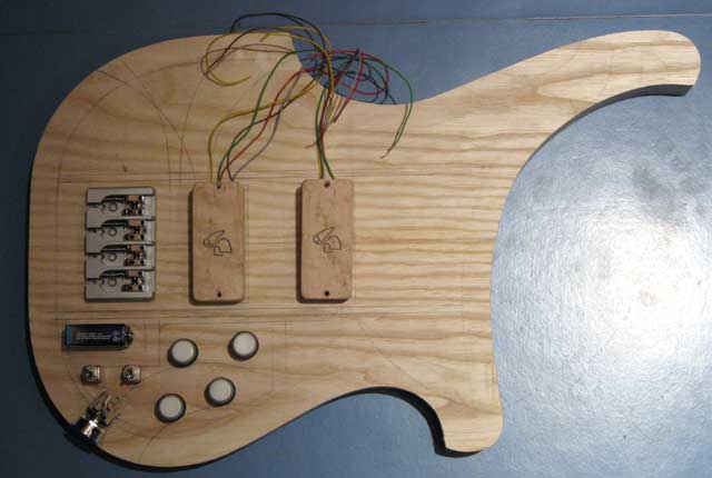 Pro Pickup werden vier Anschlüsse herausgeführt. Die Schaltung ist sehr