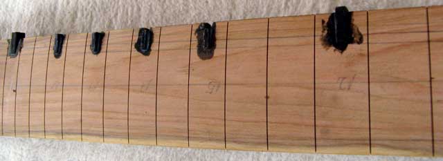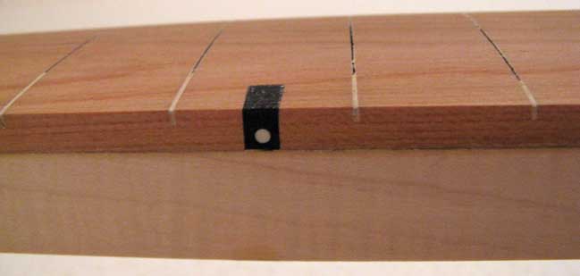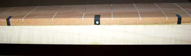 Der Hals ist aus geriegeltem Ahorn mit stehenden Jahresringen und