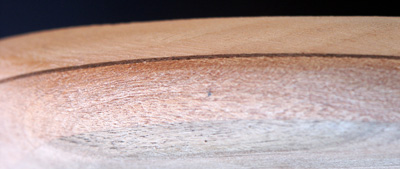 Wenn die Riegelung der Nussbaum-Rückseite nicht erst beim Schliff mit 200er Papier sichtbar geworden wäre, hätte ich daraus eine wunderbare Decke gemacht, statt sie vor meinem Bauch zu verstecken :-).