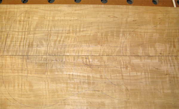 Der Korpus wurde mit nur 5 Schichten Auro 121 und Auro 126 geölt. Der letzte Schliff wurde mit Teebaumöl durchgeführt, woraus ein relativ starker Glanz entsteht, der sich aber schnell zu einem seidenmatt reduziert, weil dieses Öl nicht härtet und sich deshalb abgreift. Der Hals wurde mit den gleichen Ölen nur viermal behandelt und ist matt.